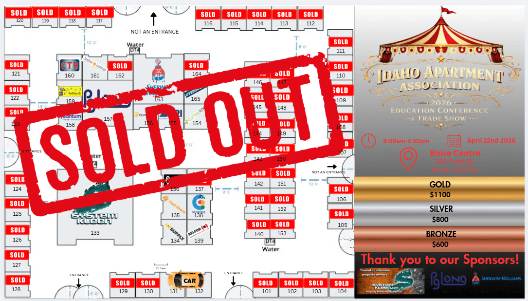 The 2026 Idaho Apartment Association Education Conference and Trade Show is rolling into town on Wednesday, April 22nd. Don't miss this spectacular, industry-leading event filled with top-tier education, exciting exhibits, and unparalleled networking under one big top!"