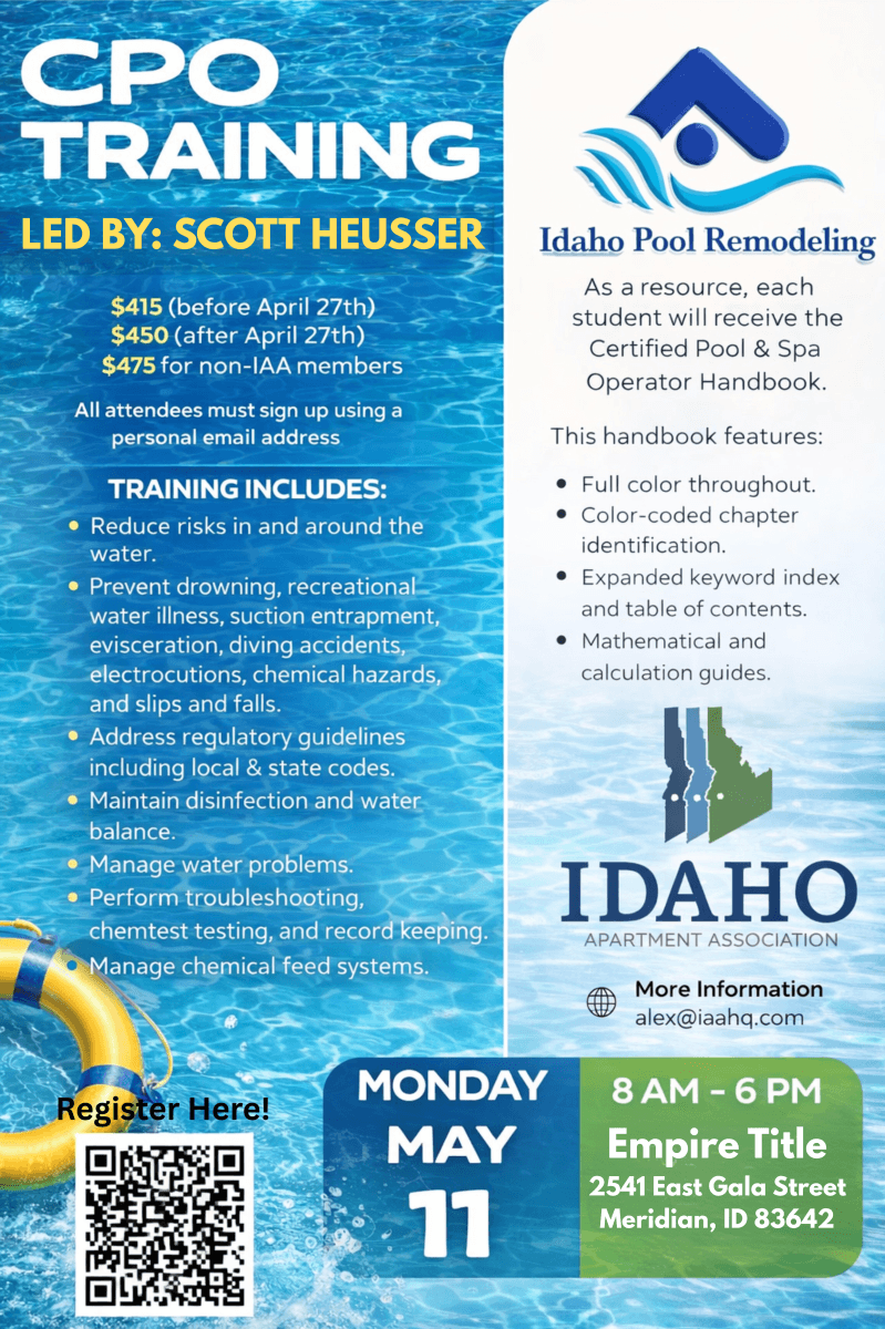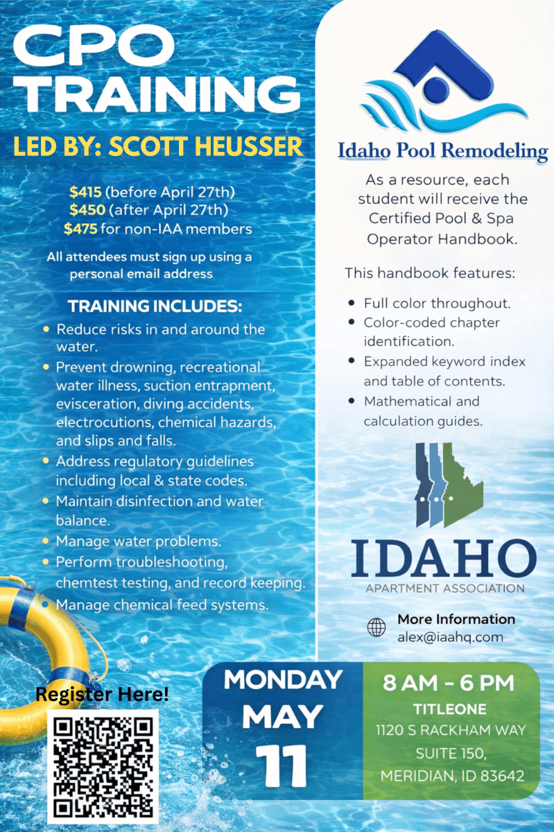 Idaho Apartment Association (IAA) events may be photographed or video recorded. By participating in this event, you consent to your photograph/video recording being used for promotional purposes including but not limited to IAA promotional material, website, and social media.