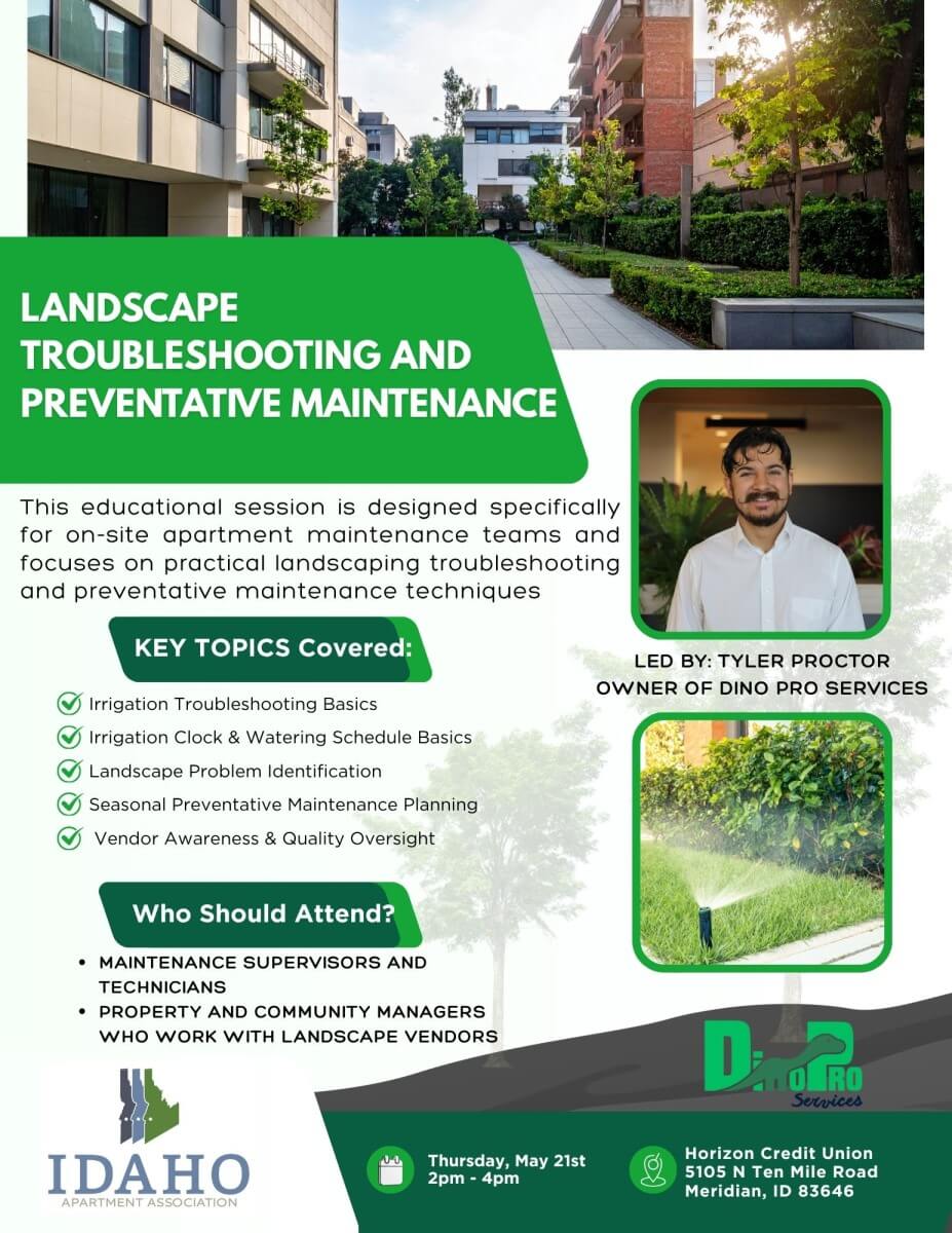 This educational session is designed specifically for on-site apartment maintenance teams and focuses on practical landscaping troubleshooting and preventative maintenance techniques.